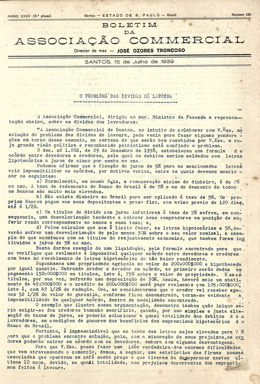 No início de 1929, a Associação Comercial de Santos desempenhava um papel central na organização e no acompanhamento do comércio de café que passava pelo Porto de Santos. Em um momento em que a economia brasileira dependia fortemente da exportação do produto, a entidade atuava como uma importante referência para comerciantes, exportadores e agentes do mercado, reunindo informações estratégicas sobre o funcionamento do porto e sobre o mercado internacional.