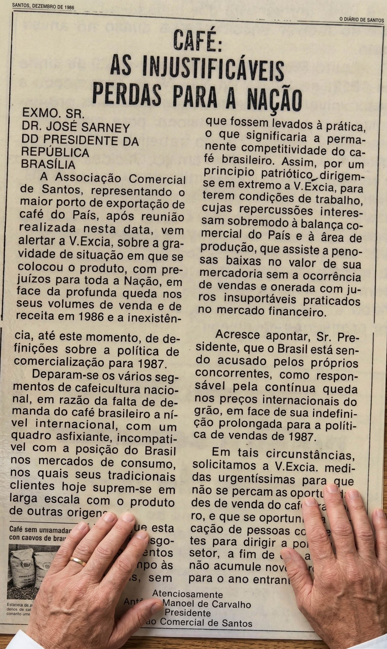Diante desse contexto, a Associação Comercial de Santos (ACS) assumiu uma posição ativa na defesa dos interesses do setor. Assim, em fins de 1986, a entidade organizou a publicação de uma página inteira em jornais de circulação nacional, na qual divulgou, na íntegra, o conteúdo de um telex enviado ao então presidente da República, José Sarney. No documento, a ACS manifestava formalmente sua insatisfação com a condução das políticas cafeeiras e cobrou providências imediatas por parte do governo federal.