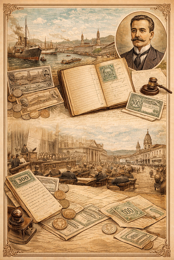 Em 1907, a cidade de Santos vivia um período de intenso dinamismo econômico, marcado pelo movimento do porto, pela exportação de café e pela crescente circulação de capitais através de bancos e casas comerciais. A chamada “Praça do Comércio de Santos” era reconhecida como uma das mais ativas do país, e os depósitos bancários — muitos deles feitos diariamente e até por poucas horas — faziam parte essencial do fluxo financeiro que sustentava importadores, exportadores, companhias de café e empresas ligadas ao cais.